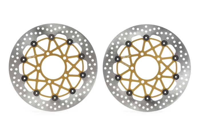 碟盤採用完全浮動設計,核心由經熱處理的鋼帶製成,能承受極端的熱機械應力,中央的鋁合金hub則是從整塊金屬中精密加工而成,確保更高的耐用性與性能。