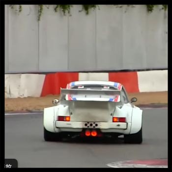 Porsche 935 spits huge flames on track